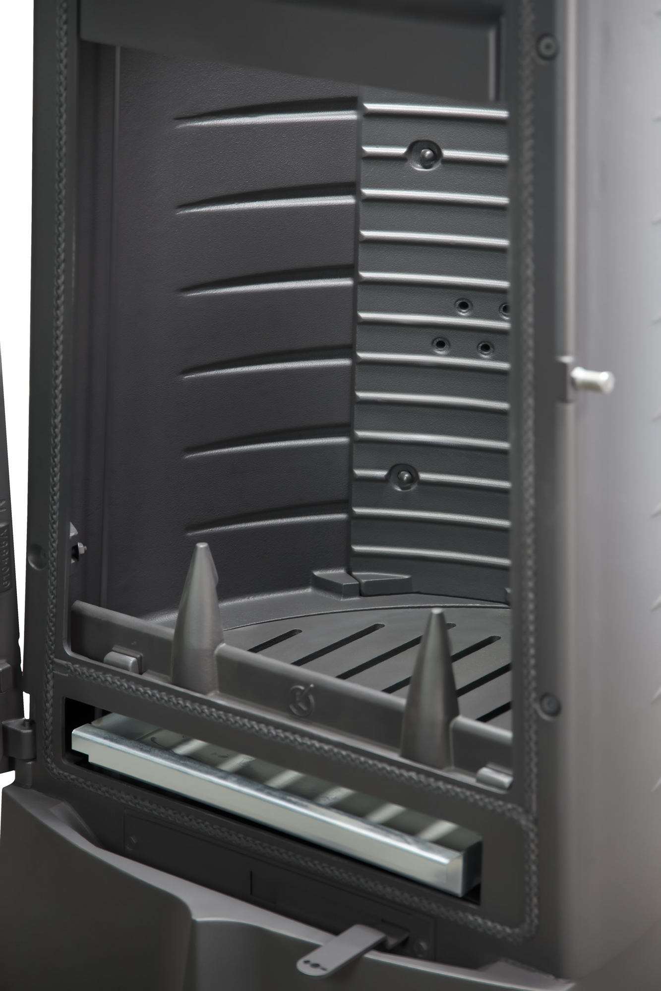 Камин оснащен зольником для удобной очистки и обладает высоким коэффициентом полезного действия (КПД) на уровне 79%, что гарантирует эффективное использование топлива и экономию энергии. Вторичный дожиг дает возможность максимально использовать потенциал дров, обеспечивая длительное время горения.